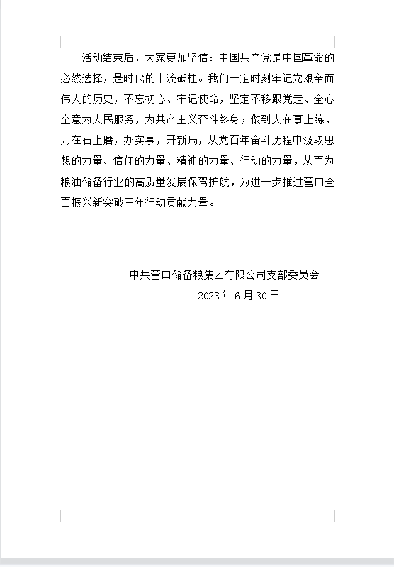 為了深入貫徹落實中央、省、市委黨建工作會議精神,營口儲備糧集團黨支部積極引導(dǎo)廣大黨員干部把思想和行動統(tǒng)一到中央、省市委和市國資委黨委的決策部署上來,從著力推動黨建工作的提質(zhì)增效入手,不斷提高集團黨支部把方向、管大局、保落實、促改革的能力和定力。