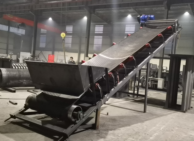 帶式輸送機(jī)又稱皮帶機(jī),應(yīng)用廣泛,輸送產(chǎn)量大。本臺(tái)設(shè)備是寬1.2米,長(zhǎng)8米的帶式輸送機(jī),輸送角度27度,采用人字形輸送帶,摩擦力強(qiáng)。用于輸送生活垃圾以及建筑垃圾。