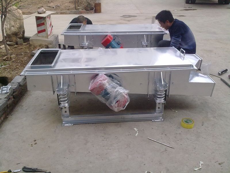 ⒌電機(jī)臺座:安裝振動電機(jī),使用前連接螺釘必須擰緊,特別是新篩機(jī)試用前三天、必須反復(fù)緊固,以免松動造成事故。